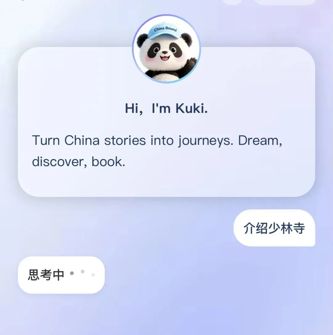 不过,在支付宝端,不管你说中文还是英文,Kuki都只说“思考中”,不说“I'm pondering……”