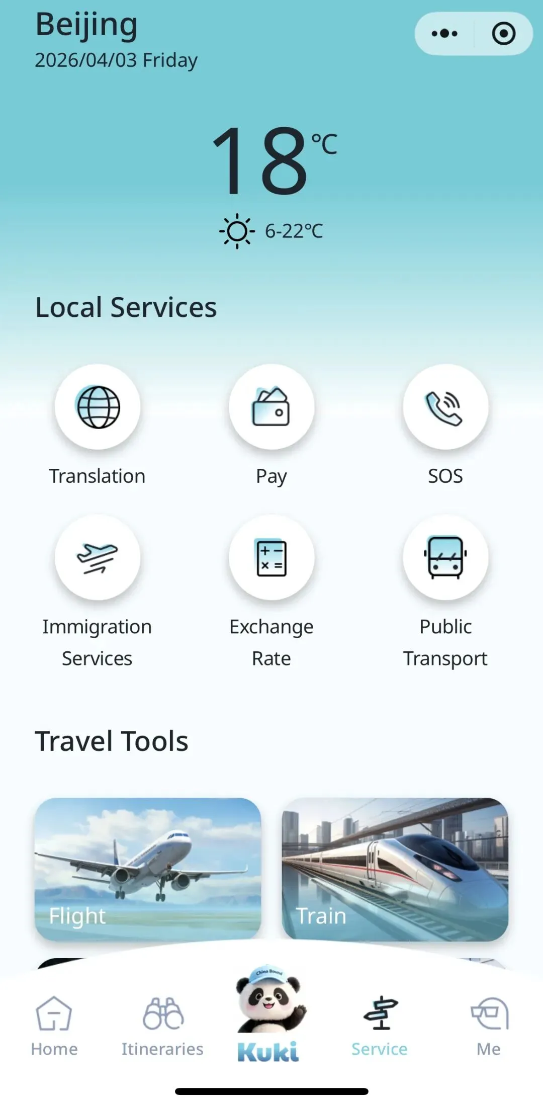 而支付宝端这个地方显示的是Itinerary Assistant,需要点进去之后才能看到Kuki小熊猫。