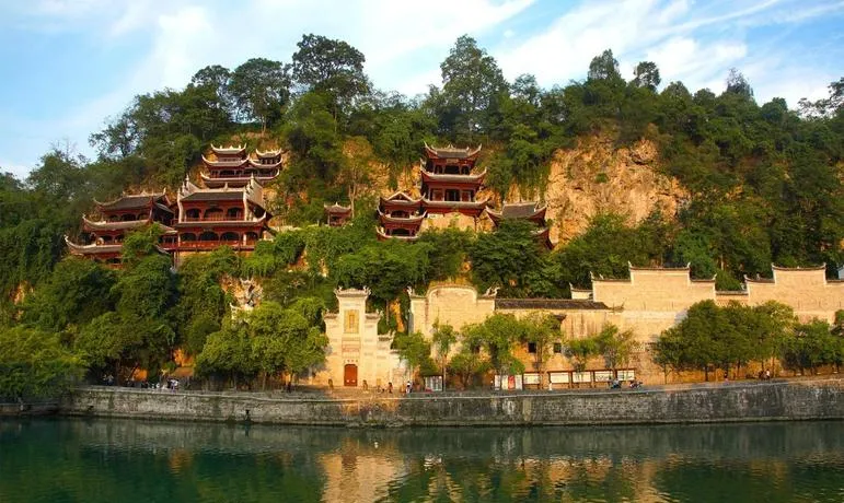 青龙洞是镇远最贵的景点,60块钱门票,很多人觉得不值,但这事得看你怎么想,如果你是冲着寺庙去的那确实不值,但如果你是想看古建筑怎么和悬崖共存的,那这钱花得不亏。青龙洞不是一座庙,是一组建筑群,儒释道三家的建筑挤在一个山坡上,有的建在崖壁上,有的悬在半空中,有的直接把山体掏空当柱子用,这种建法在贵州很常见,但保存这么完整的不多。