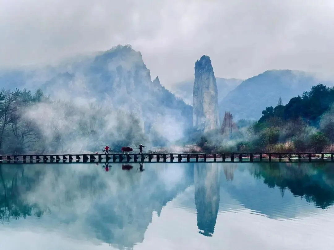 老汉牵牛表演:朱潭山每天9:30、14:30有老汉牵牛过桥表演,云雾缭绕中宛如仙侠画卷,是网红打卡必拍。 石窟咖啡馆:倪翁洞的石窟咖啡馆,午后光柱从洞口射入,如神仙特效。 小赤壁夕照:傍晚时分,小赤壁栈道被夕阳染红,漫步其间如行走于仙踪。 建议游玩时间:4-5小时 路线:朱潭山(老汉牵牛)→鼎湖峰→倪翁洞→小赤壁