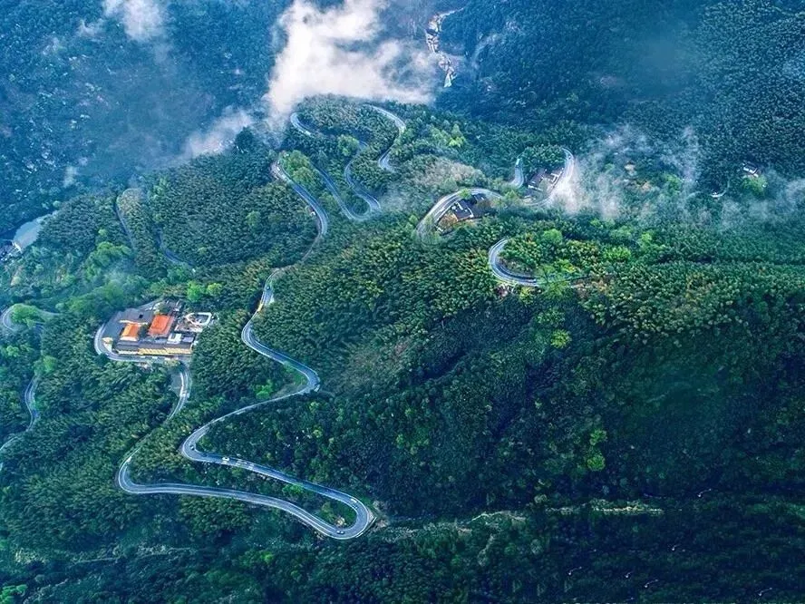 山上即九华镇,为经14公里盘山公路进入迎仙桥检票口后,先是九华街景区,然后沿盘山公路继续直行6.5公里是闵园景区和天台景区。