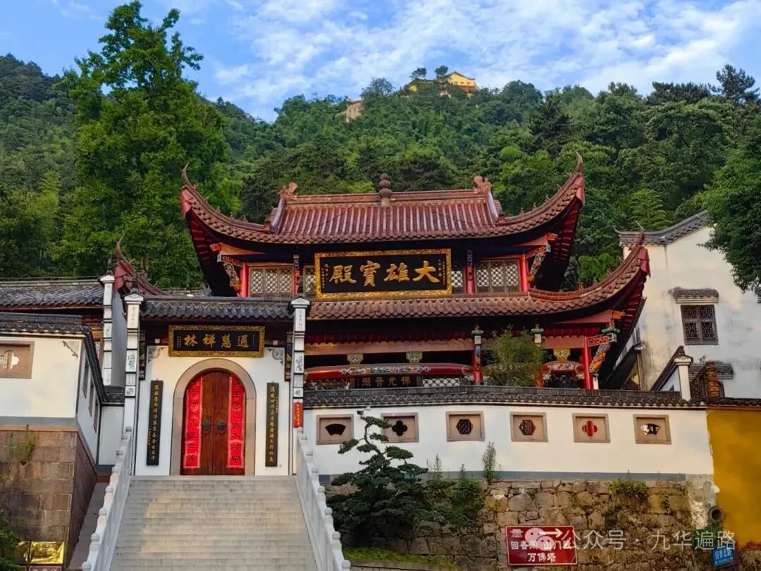 百岁宫地处插霄峰摩空岭,建筑群依悬崖绝壁而建,以山势为基,白墙黛瓦层层叠叠,形如错落有致的古城堡。主体建筑五层楼阁融山门、大殿、肉身殿于一体,内部廊道迂回贯通,外部险峰环抱,尽显“山即是寺,寺即是山”的营造智慧。百岁宫还建有五百罗汉堂,供奉五百尊贴金彩绘罗汉像,姿态万千,为华东地区规模最大的罗汉道场。百岁宫住持慧庆法师,1958年出生,安徽庐江人。1979年在合肥明教寺礼妙安长老出家,1980年经妙安长老推荐,拜九华山仁德大和尚为师。1987年任百岁宫住持。现任九华山佛教协会会长,九华山佛学院院长。法华寺位于东崖西麓,近邻闵公殿(财神殿)。如果不是南方寺院独有的黄色外墙,人们很难注意到它。法华寺始建于1915年,建筑规模不大,但话说回来,小寺庙往往有大乾坤。