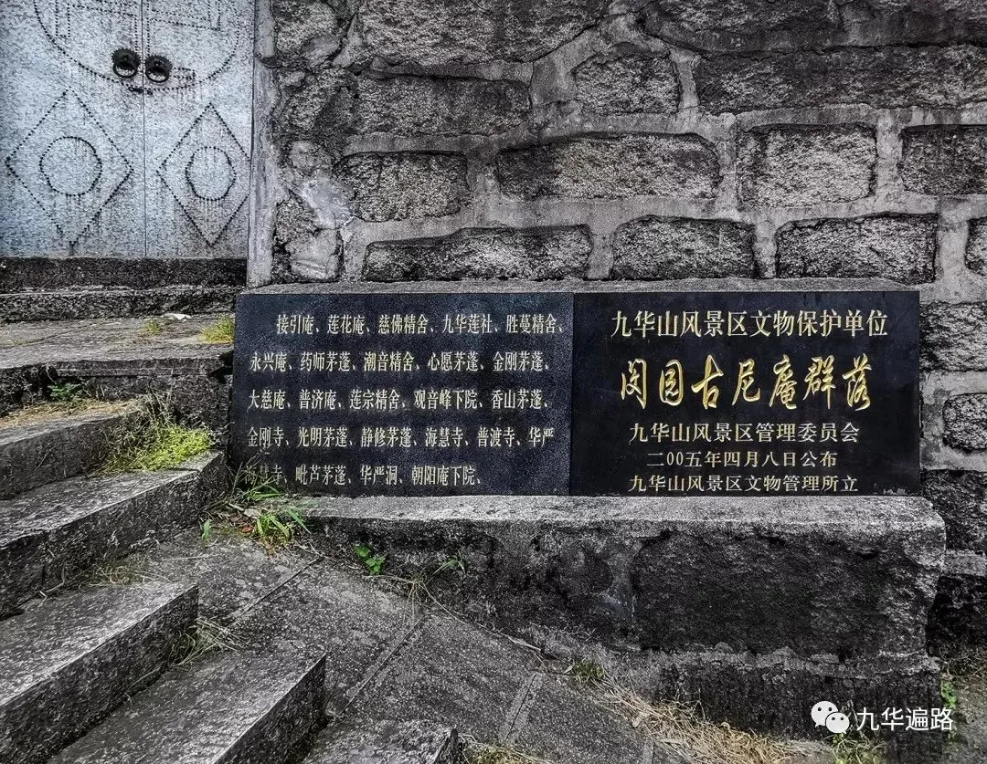 化城寺,始建于东晋,九华山开山祖寺,全国重点寺院。化城寺为皖南民居式建筑,白墙青瓦马头墙,前后四座殿宇分别置于三个台基上,随坡势逐级升高,气宇轩昂,庄严古朴。化城寺大殿主供三世佛,从左至右依次为主管西方极乐世界的阿弥陀佛,主管娑婆世界的释迦牟尼佛和主管东方净琉璃世界的药师佛。三世佛是大乘佛教的主要崇敬对象,常见于内地寺院。具体还分为按照时间表述的竖三世佛,以及按照空间表述的横三世佛。竖三世佛包括过去、现在、未来三世三劫佛。按照大乘佛教的说法,过去佛有很多,即使在所谓现在“贤劫”中也有很多佛,然而中国在寺院造像中常以燃灯佛代表过去佛,现在佛是释迦牟尼佛,未来佛是弥勒佛。横三世佛是指三个佛世界的佛,中国选取东方净琉璃世界的药师佛、娑婆世界的释迦牟尼佛、西方极乐世界的阿弥陀佛为横三世佛。对此,南传上座部佛教则只尊奉释迦牟尼佛,在斯里兰卡、泰国、缅甸以及云南西双版纳等地佛教寺院的主要殿堂,多数都是只有一尊释迦牟尼佛的造像,偶尔有两位阿罗汉站立左右。1981年化城寺兼作九华山历史文物馆,现更名为九华山风景区博物馆,当前主要藏有贝叶经、明大藏经(永乐北藏)、明无瑕和尚血经、明神宗圣旨、清康熙皇帝御书“九华圣境”、清乾隆皇帝御书“芬陁普教”、幽冥钟、谛听铜像、宋代石狮、地藏利生宝印等珍贵文物。化城寺住持常敏法师,1983年于九华山祇园寺依明心长老剃度出家,1986年接仁德老和尚法脉,为临济宗第46代传人,1994年担任化城寺住持。长生庵,位于旃檀林斜对面,从化城寺出发2分钟即到。顾名思义,长生庵是一座净土宗寺院。大乘佛教认为,如果能念佛往生净土,便可以在净土获得长生不老,和极乐世界人众一样长寿安乐,生命无有极限。《无量寿经》里也有“可得极长生,寿乐无有极”的描述。长生庵,始建于明代,安徽省重点寺院。这是一座典型的皖南民居式建筑,内部为传统榫卯工艺的全木结构体系,古色古香,外部为砖墙围护,建筑两侧设马头墙。长生庵的建筑风格与隔壁的龙庵、化城寺东的立庵、菩提阁非常相似,为同时期建筑。长生庵主供九华山“地藏三尊”,主尊为结跏趺坐的金地藏菩萨,头戴五佛冠、身披袈裟、手持摩尼宝珠,左协侍为身着袈裟、手持锡杖的道明和尚,右协侍为身着俗装、长须白髯的闵公。民间相传闵公是九华山最大的地主,乐善好施,闵公和儿子道明先后拜金地藏为师进入佛门。长生庵住持是比丘尼无垢法师,从1988年起担任九华山佛教协会的副会长,当时的会长还是仁德老和尚(1926-2001),副会长是普全法师、晓悟法师和无垢法师。无垢法师也是九华山佛教界的老人了。从九华街西白马亭沿石板道上行,广济茅蓬东侧即是无量寺。无量来源于梵文,通常代表究竟、圆满、不可限量,往往用来形容慈悲、善行、寿命、光芒、功德等,是一个常见的佛教词汇。无量寺地处九华镇政府后身,为皖南民居式寺庙,依山就势而建,白墙褐瓦马头墙尽显徽派建筑的婉约。无量寺为典型的禅宗道场,照壁镌刻方圆默契,这正是沩仰宗的禅风。无量寺亦不设大雄宝殿,法堂主供毗卢遮那佛,毗卢遮那佛是释迦牟尼佛的法身。根据大乘佛教经典《华严经》的说法,毗卢遮那佛是文殊菩萨和普贤菩萨的老师,三者在一起组成华严三圣。从无量寺出来,沿石板道继续上行,3分钟即到上禅堂。