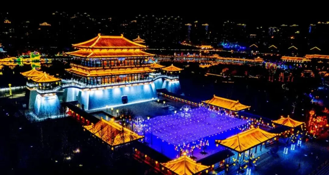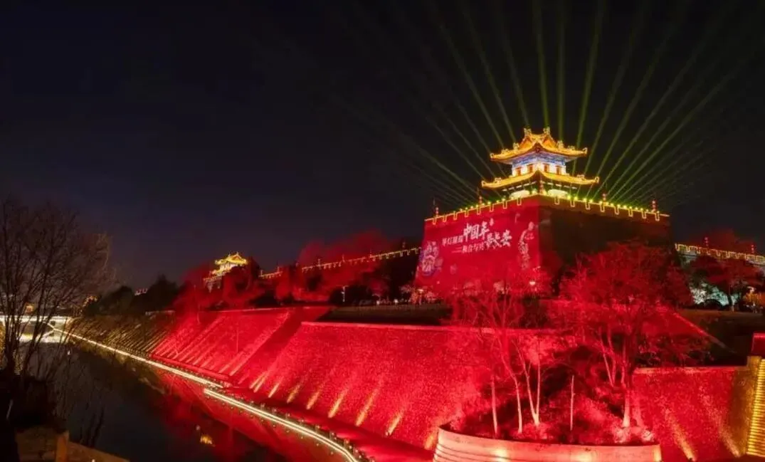 梦长安多媒体城墙实景文艺演出以“梦长安”为主题,由“永恒之城”、“唐韵风神”、“盛世国都”、“天下长安”四个章节组成,艺术地将具有悠久历史的中国大唐文化元素贯穿于演出始末,展现礼仪之邦对世人友好往来和平相处的永恒祈愿。