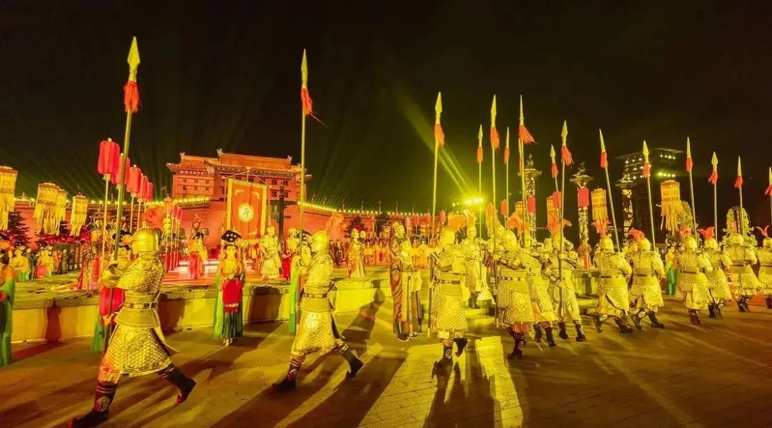 演出融合了十三朝古都的历史与丝绸之路沿线的人文风情,以“尚德守礼”为核心,以行进式,体验式特色表演,堪称“天下第一礼”先后接待过众多海内外元首、贵宾!由唐代礼仪团队构成的礼宾流程,突出皇家礼仪、仪仗表演,主要流程包括——下车入账——御道前行——迎宾唱诵——出城相迎——触摸历史。