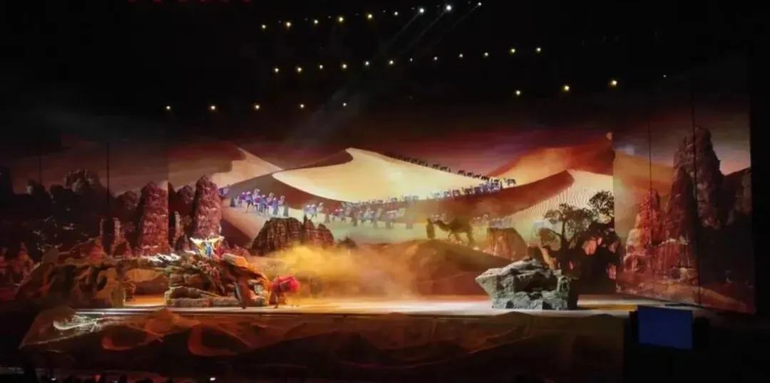会跑的实景歌舞演艺驼铃传奇秀,由华夏文旅集团董事长夏春亭担任总策划、总导演、总编剧。在编撰驼铃传奇的过程中,以“一带一路”为主线,深入挖掘大唐传统文化,追寻驼队丝绸之路上的踪迹,以正能量传播西安最辉煌历史时期的文化传奇。驼铃传奇整场实景歌舞演艺分为序幕《岁月再现》及《送君千里》、《狼道遇险》、《异国风情》、《祥雨洗尘》、《迎郎归来》、《华夏盛世》七幕剧情。