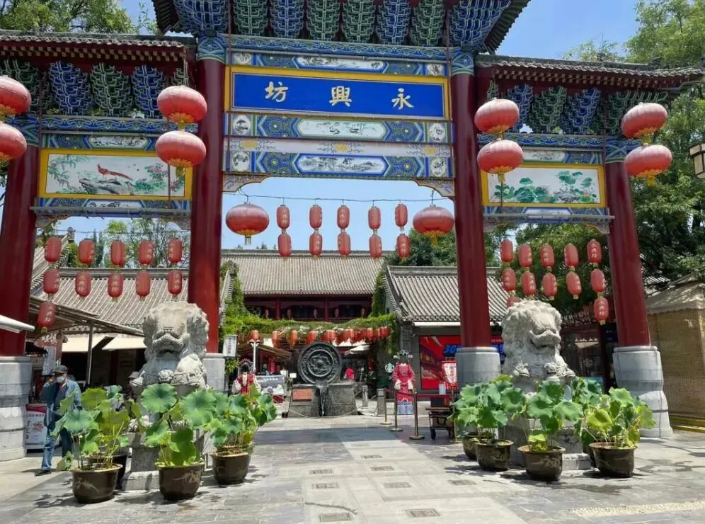 永兴坊,原地为唐朝魏征府邸旧址,是西安市为了继续完善顺城巷历史风貌,充分彰显古城历史底蕴,扩大西安知名度和影响力在2007年在原址上建造的,为古城再添了一个“坊”式的精品项目。项目总占地15亩,东西长130米,南北宽88米,按规划设计拟建仿古“坊、肆”建筑群、牌楼、休闲绿化广场、内街、井房以及建筑物外墙仿古装饰等等,主要以关中牌坊和具有民间传统的建筑群组合,形成古里坊式布局,展示古长安城的街坊式形态和历史生活气息,以及传统民俗生活空间。依托古城墙深厚的历史文化底蕴,在传承历史、彰显人文,进出有序、错落有致,内涵丰厚、做旧如旧,内敛外聚、动静分离等风格特色上,实现与古城墙历史景观系统的高度和谐,不仅将里坊文化的建筑作为保护重点,更将陕西非物质文化遗产美食的城市人文精神作为发掘和保护的核心。