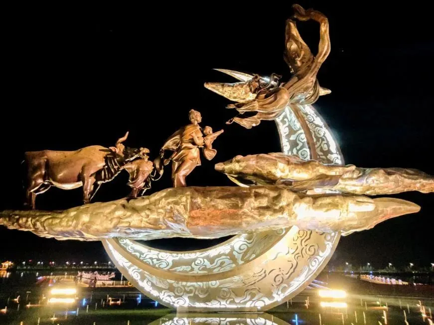 汉武帝元狩三年(公元前120年),为训练水师,在长安斗门镇一带,开凿了昆明池,池中刻置石鲸,两岸刻置牛郎、织女,以象征天河。两千多年来,象征“牛郎”和“织女”的石爷和石婆隔昆明池遥遥相望,见证了千年昆明池的盛衰。由于牛郎织女传说起源于此,加之当地七夕文化源远流长,因此,昆明池项目在规划和建设中,大量融入了七夕和爱情主题,故称作“七夕公园”。该项目将会对大西安水系治理、涵养生态、环境保护、文化传承、旅游休闲发挥重要引领作用,将建设成大西安文化旅游、休闲度假、会议会展和水上体育赛事为一体的世界一流旅游度假目的地。