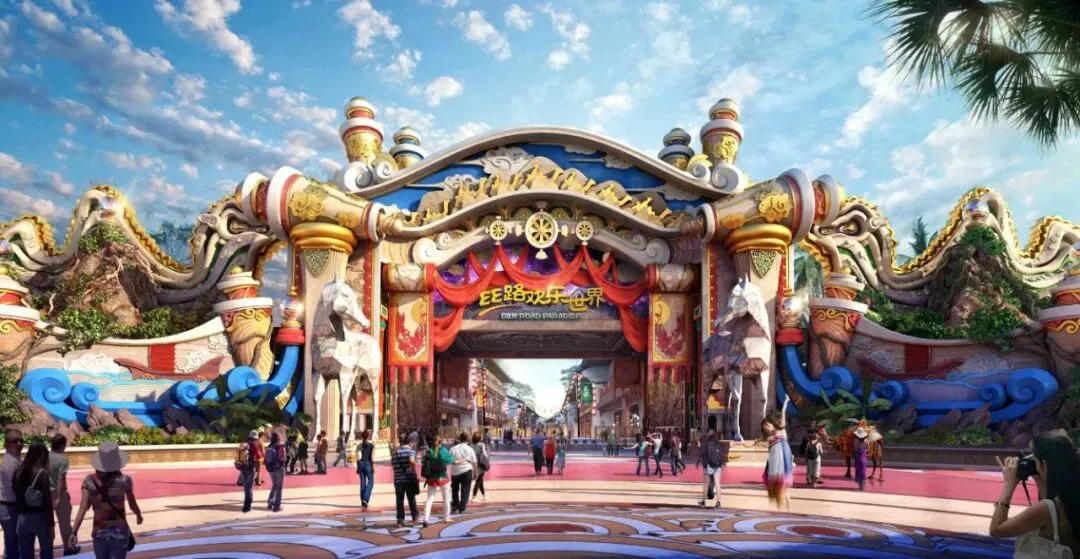 丝路欢乐世界作为西安市丝绸之路风情城的核心项目,通过建造中国神奇中华街区、印度恒河象谷街区、中亚沙海秘境街区、中东瑰丽波斯街区、俄罗斯极光雪国街区、希腊众神之战街区、意大利荣耀罗马街区七个主题文化街区,将世界主要文明的优秀文化汇聚一城,实现“国际文化大融合”,为游客打造文化“任意门”。