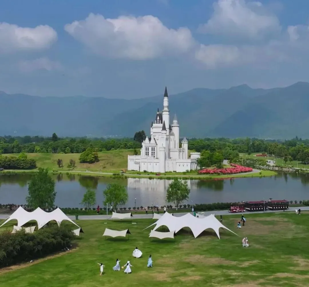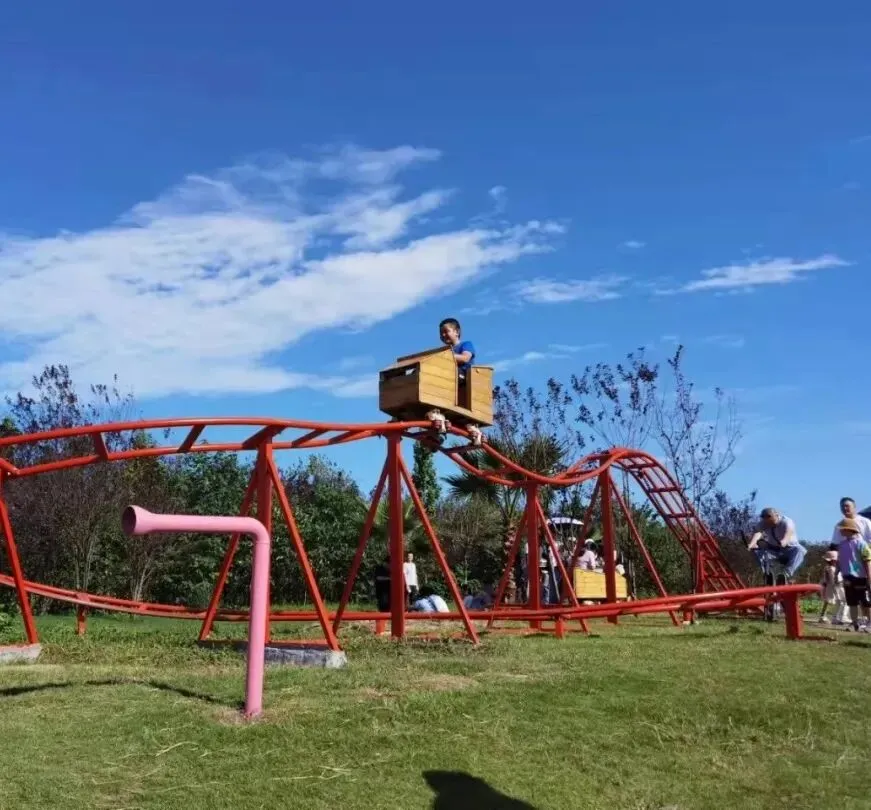 2. 观光小火车,穿梭童话世界:坐上观光小火车,慢悠悠穿梭在山林与童话屋舍之间,沿途的春日风光尽收眼底。