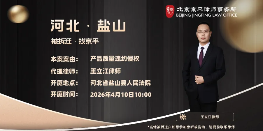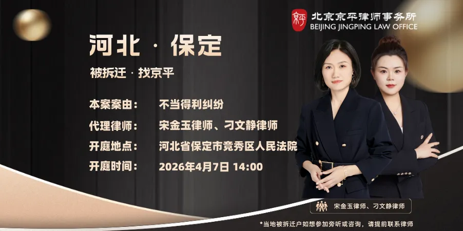 2026年4月7日至2026年4月10日,北京京平律师事务所专业拆迁维权团队的律师们将前往以下城市开庭: