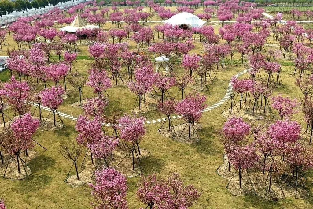 横店圆明新园目前玉兰花、樱花盛开