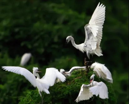 每年春夏季有近27种候鸟在此繁衍,数量多达10余万只,尤其以鹭鸶为主,主要景点有鸟语林,集鸟类观赏、鸟艺表演等,与网红羊驼、驼羊亲密互动,围观萌宠杂耍表演,更有萌宠主题打卡点。