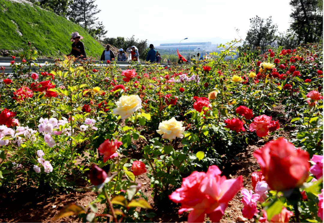 从春开到秋,一路繁花相伴,千米月季长廊绵延山间,色彩热烈又浪漫。自驾或骑行穿行其中,都能自由呼吸里口山的绿氧,让人心旷神怡。