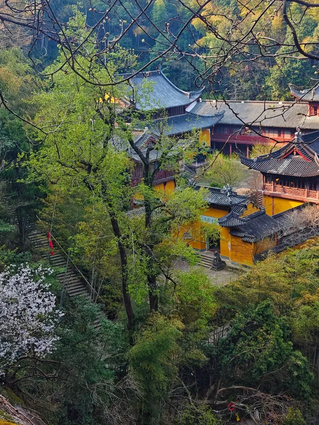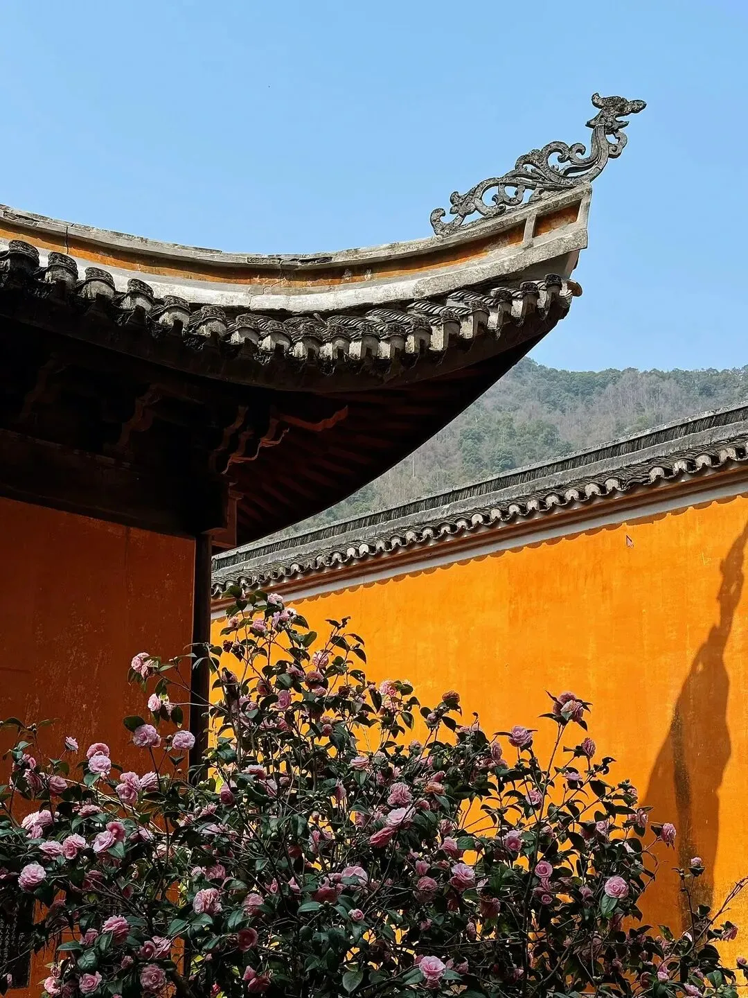 ❸拍照点:古寺檐角与远山