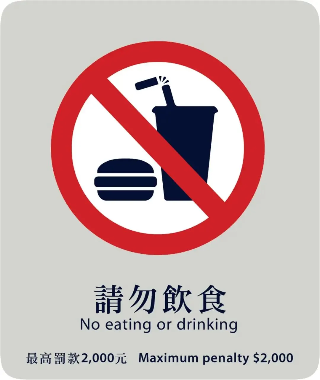 严禁饮食:只要过了闸机进入付费区(包括站台),喝奶茶、吃零食都是违规的(罚款$2,000)。