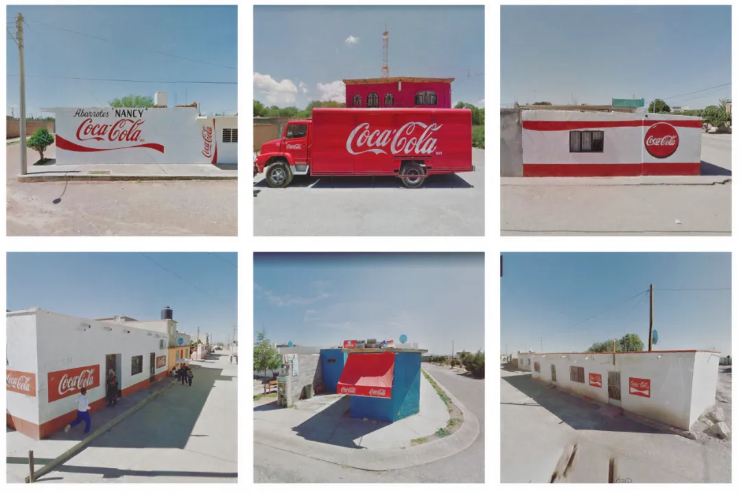 上:可口可乐矩阵,谷歌街景图像,2016-2020,Jacqui Kenny