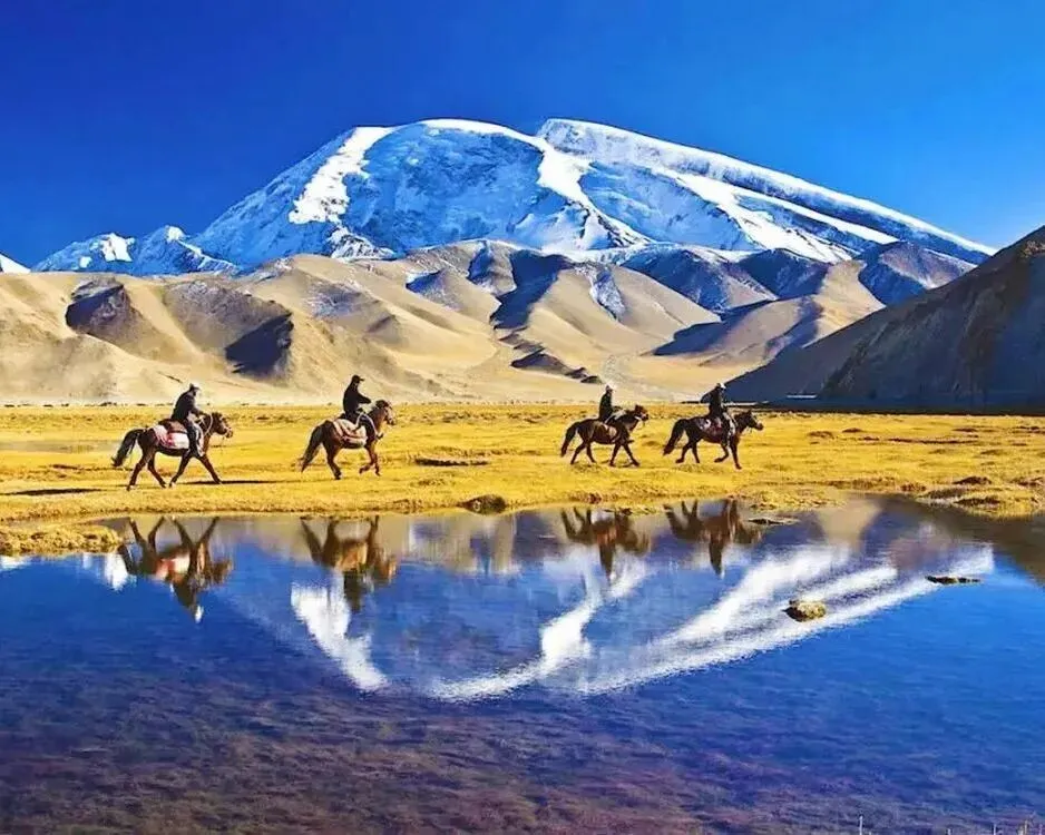 雪山冰川:慕士塔格峰(海拔7546米)被称为“冰山之父”,其冰川壮观,是登山和徒步爱好者的圣地。公格尔峰、公格尔九别峰等雪山环绕,构成壮丽的山景。