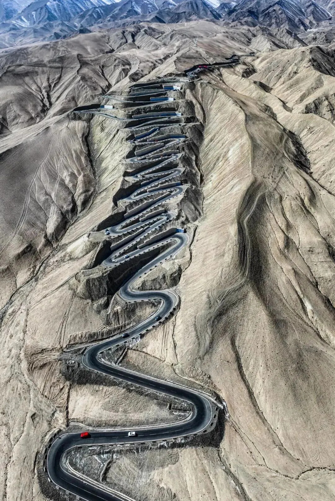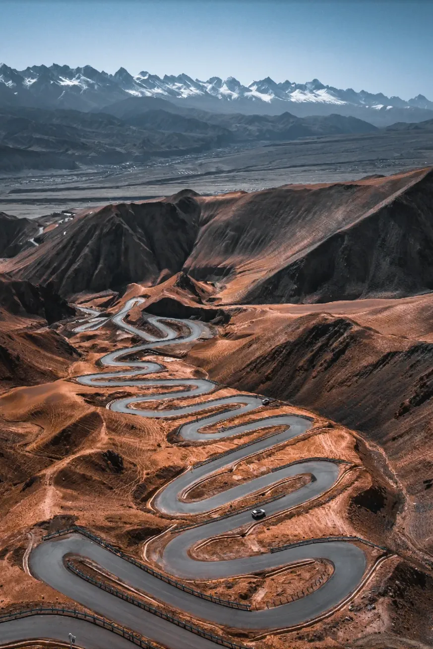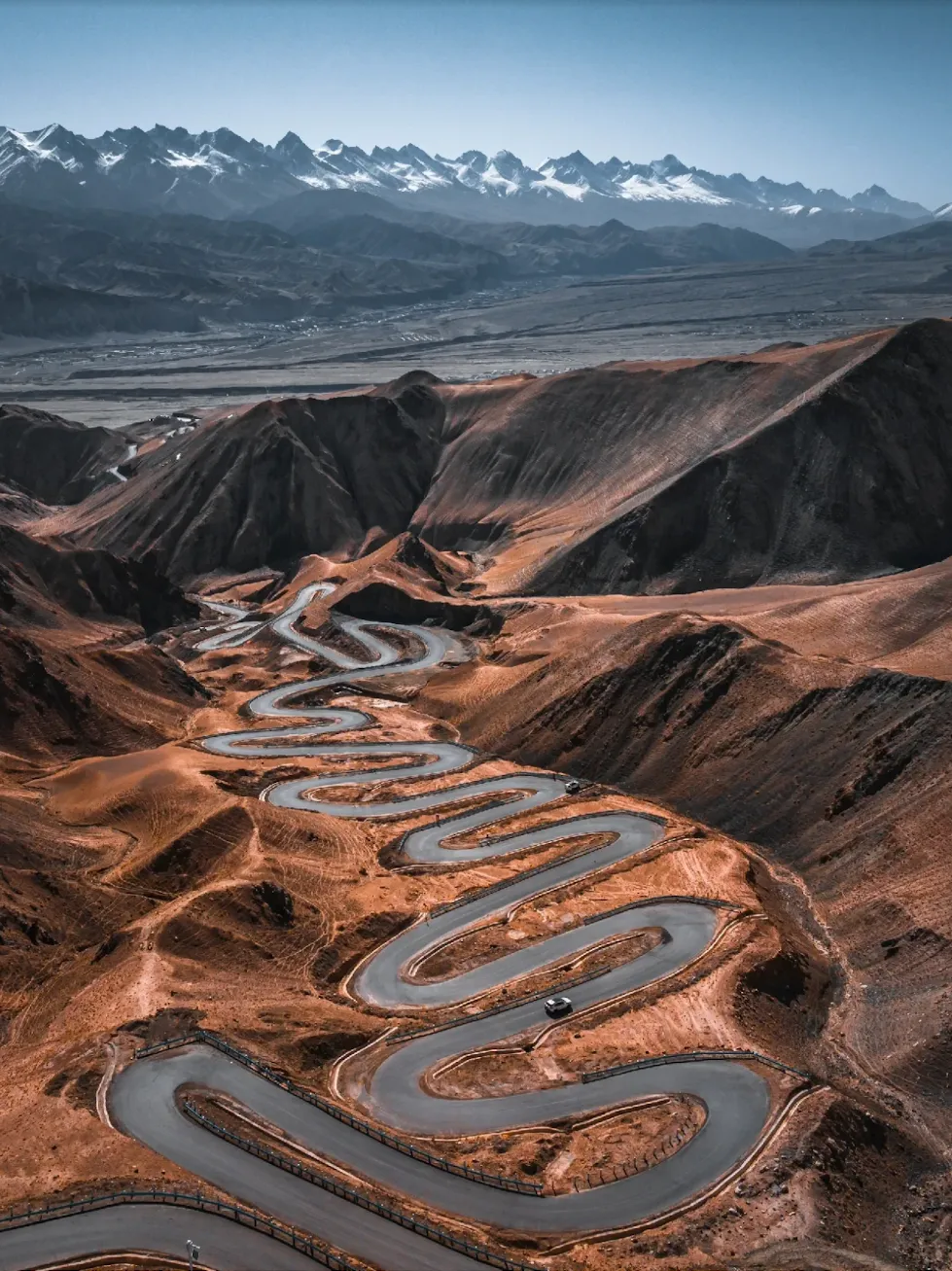盘龙古道以密集的S形、U形弯道闻名,部分弯道角度达180度甚至270度,被称作“中国弯道最多的公路”,驾驶体验极具挑战性。公路穿行于昆仑山脉之间,沿途雪山巍峨、沟壑纵横,可俯瞰帕米尔高原的壮丽风光,包括慕士塔格峰、班迪尔蓝湖等景点。
