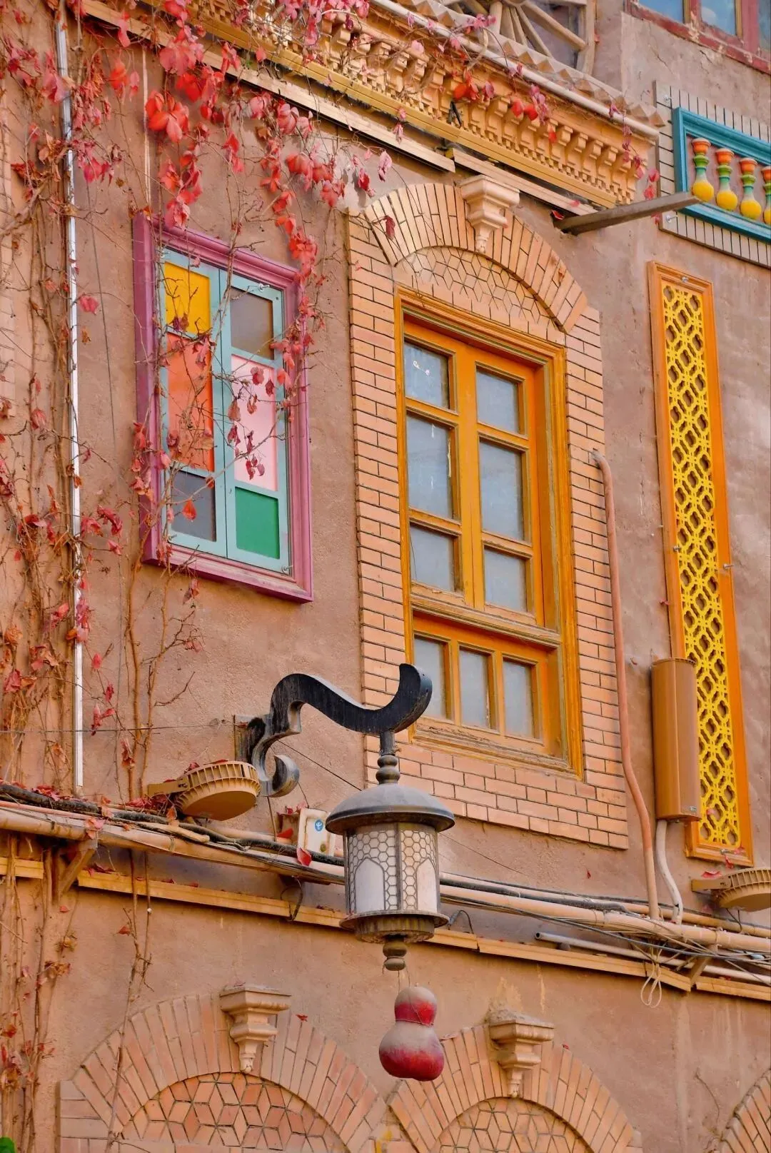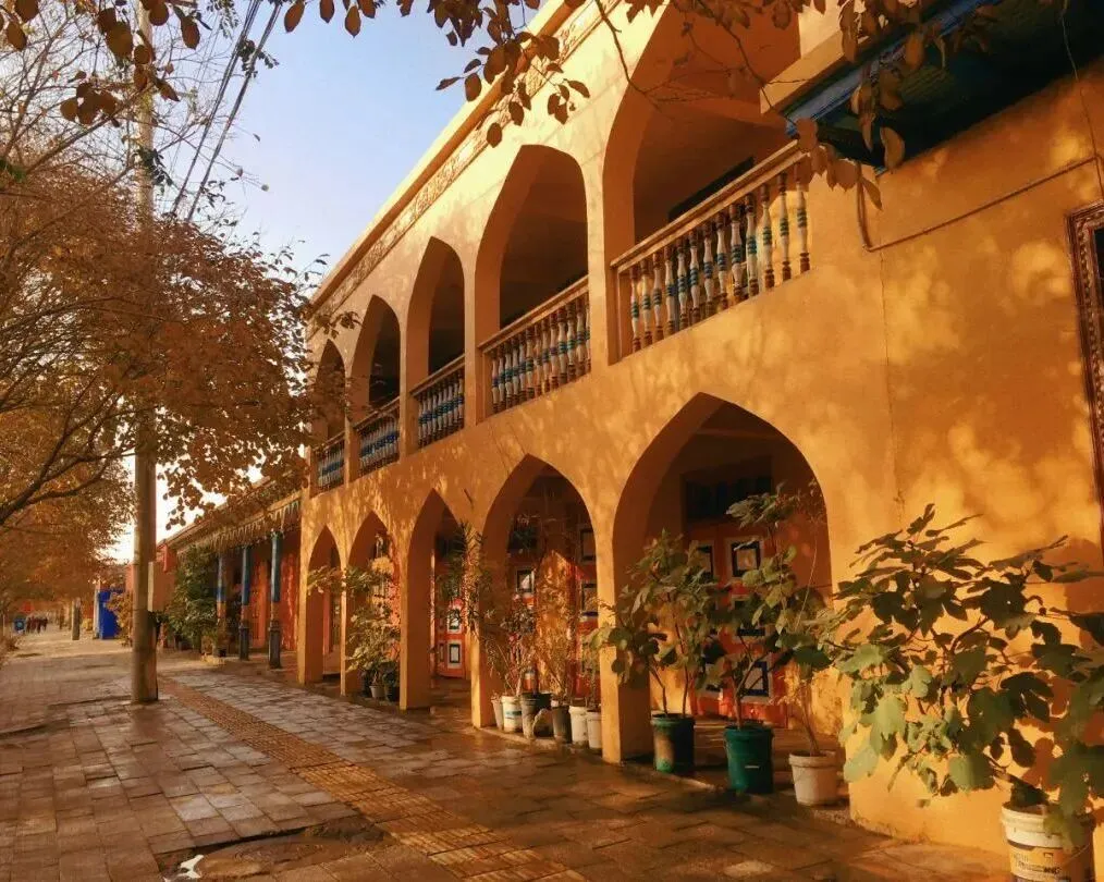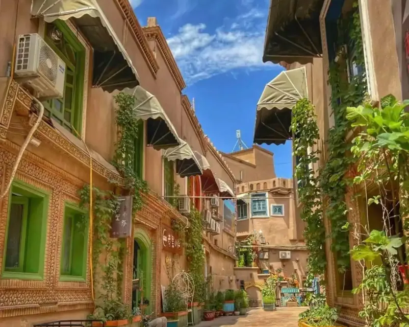 街道两侧保留了大量传统民居和古建筑,如黄黏土墙、雕花彩绘木门、拱形门额等,展现了龟兹建筑的独特风格。部分建筑经过修缮,既保留了历史原貌,又融入了现代功能,如特色民宿、文创小店等。