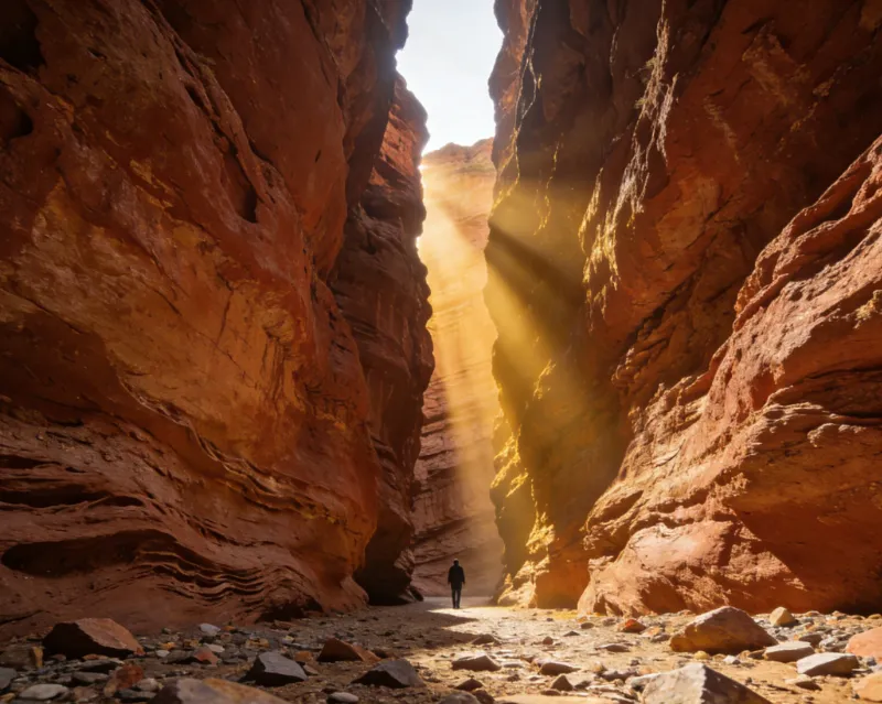 光影变幻:不同时间、角度的光线使山体呈现出五彩斑斓的色彩,如“一线天”处,天空仅剩一条线,光影对比强烈。