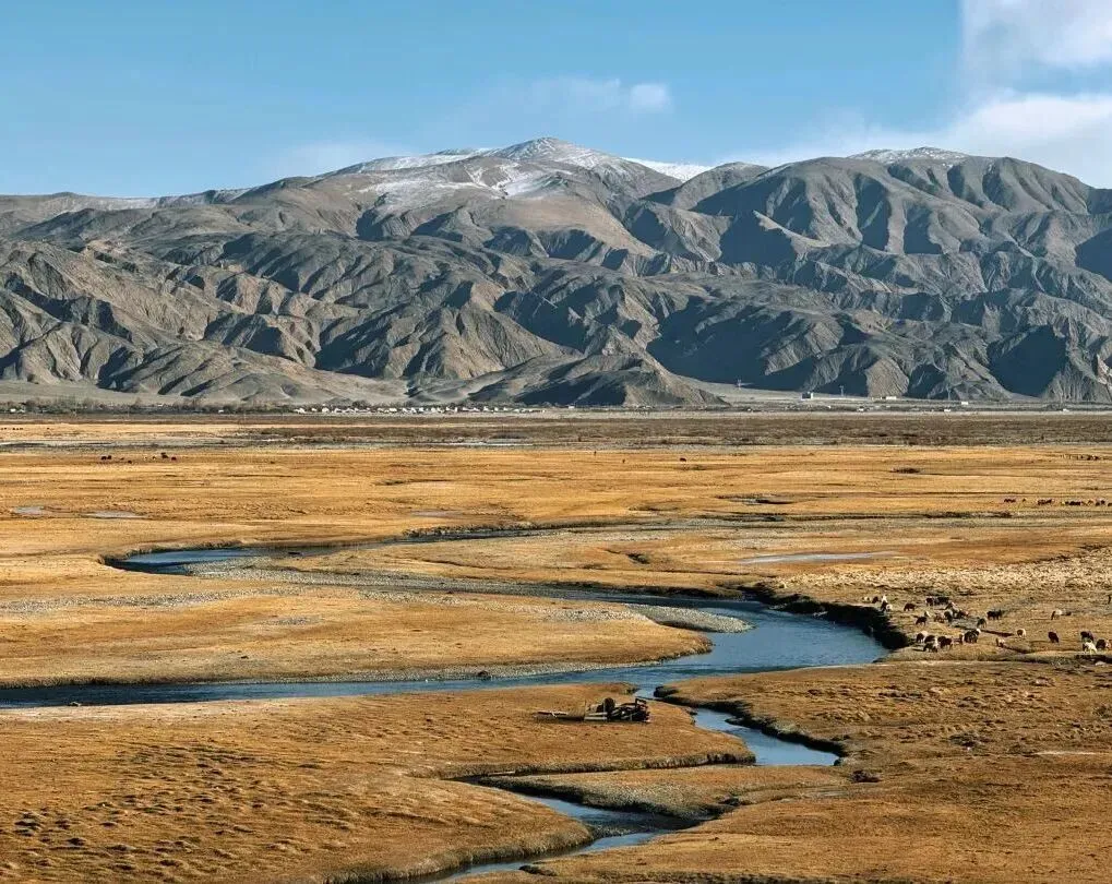 金草滩:塔什库尔干河畔的湿地草甸,秋季金黄如毯,与雪山、蓝天构成诗意田园。