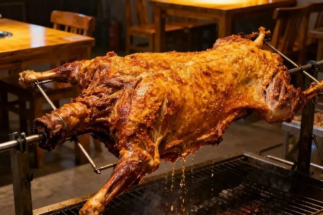 选用整只羊,经腌制、涂抹香料后,在馕坑中慢烤,外皮金黄酥脆,内部肉质鲜嫩多汁,是南疆庆祝节日或招待贵客的尊贵菜品。