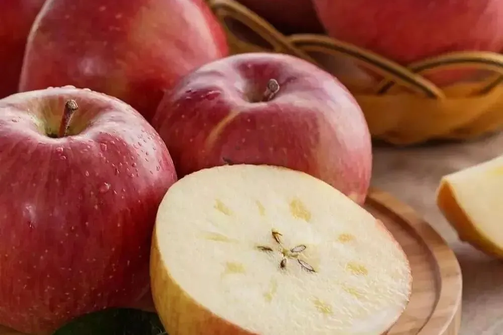 果面光滑细腻,色泽光亮,果肉细腻,果核透明等特点。阿克苏苹果都采用冰川雪水浇灌,沙性土壤栽培,使苹果的果核部分糖分堆积成透明状,形成了世界上独一无二的“糖心”红富士苹果。