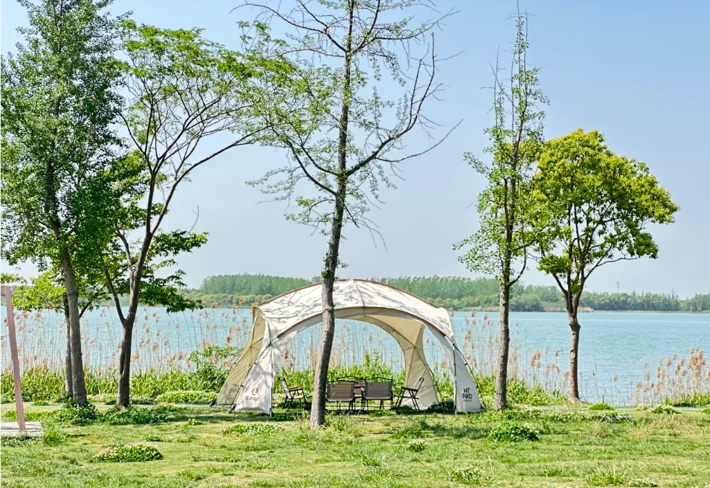 3、湖畔露营:在湖边草坪搭起天幕,摆上桌椅,喝茶聊天。时间允许,还可以体验植树活动(水杉/香樟/桂花可选),为春天添一抹绿。