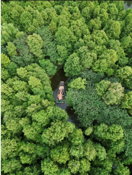 1、水上森林竹筏漂流:闯入“绿野仙踪”,水杉林立,白鹭齐飞。乘一叶竹筏穿梭其中,阳光透过树叶洒下斑驳光影,宛如童话世界。