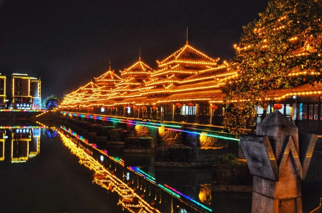 介绍:世界最长侗族风雨桥,全木结构无钉无铆,横跨㵲水,是侗乡标志性建筑。
