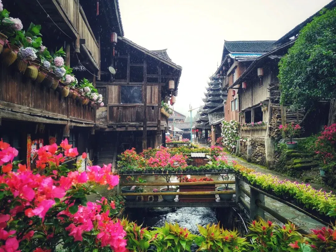介绍:纯侗族村寨,由头寨、尾寨等四寨组成,鼓楼、风雨桥、侗族大歌、合拢宴,侗族风情浓郁。