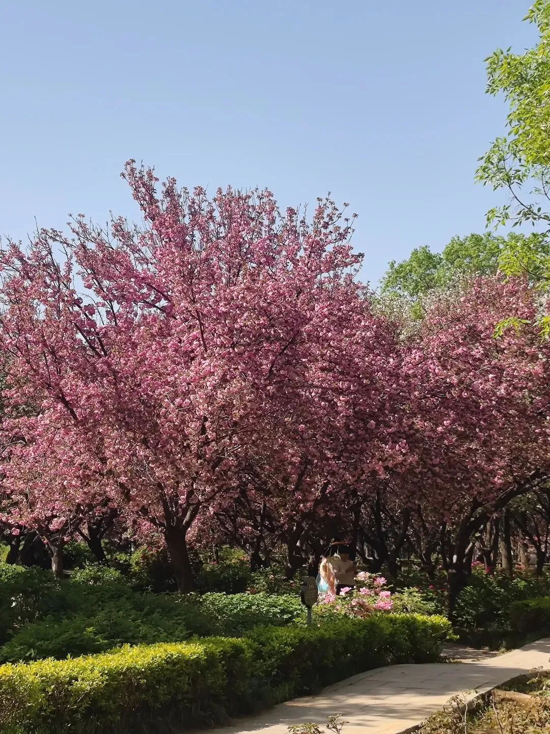 樱花盛开时,太美太美了,而且樱花的面积非常大。
