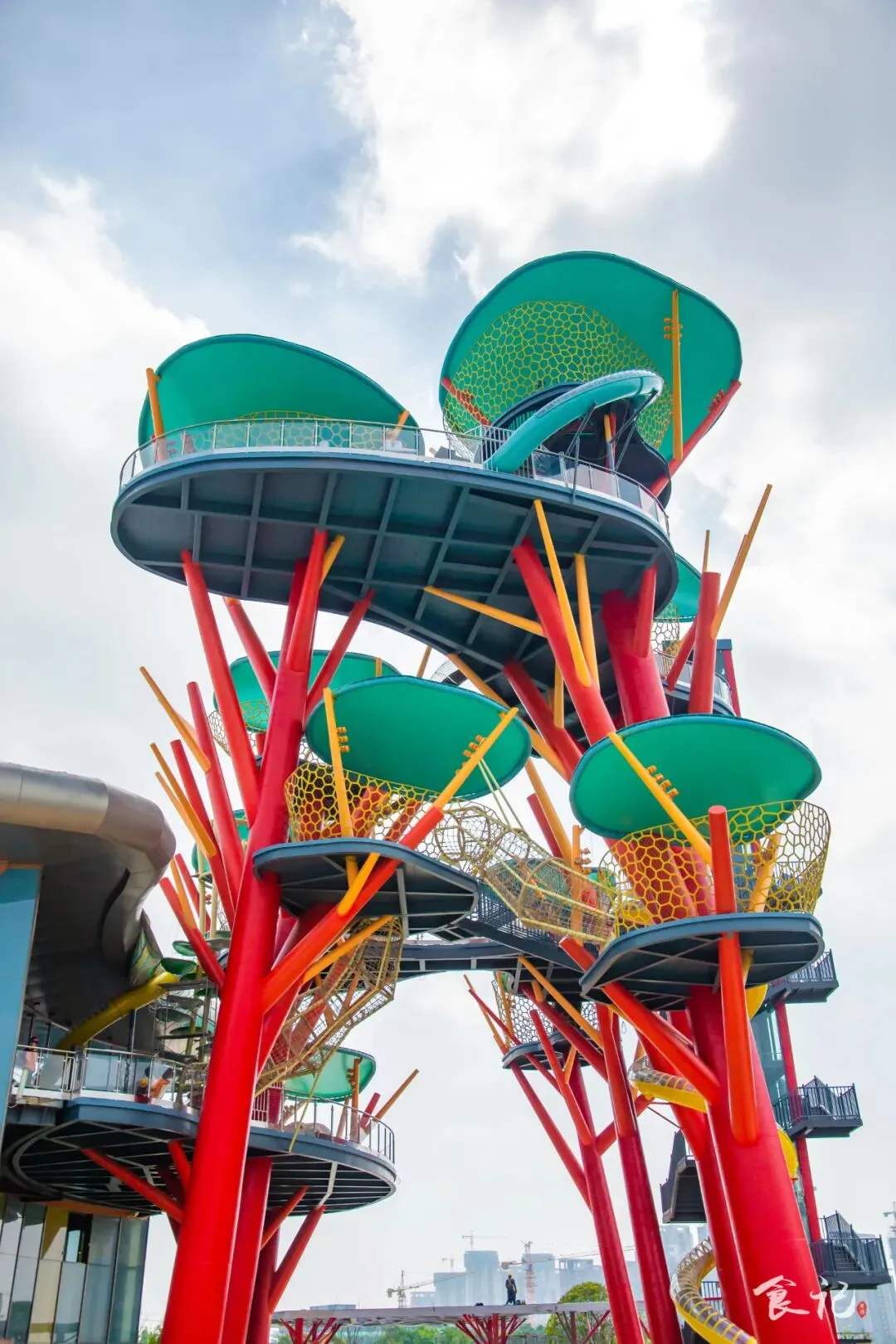 襄阳华侨城里,约10万方的生态艺术公园也丝毫不逊色,广阔的青葱与生机让人松弛下来,60余种类动植物在这里奏响生态和弦。