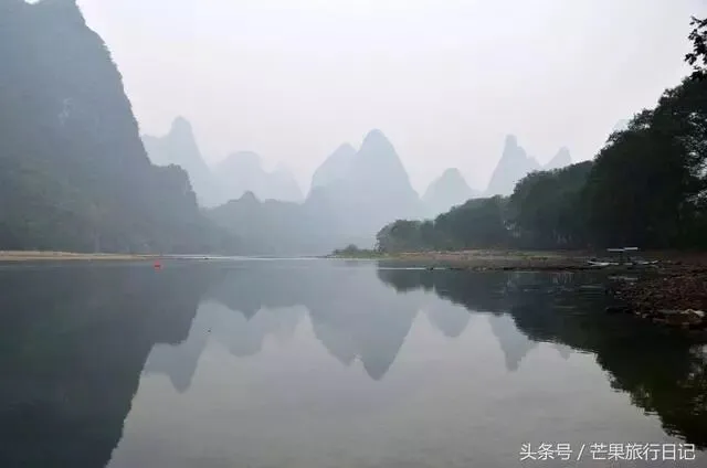 早上五点起来坐客栈老板的船游览漓江风光。天还黑黑的,江上无风无船,只有我们一艘船,江面平静如镜,倒映着群山,非常美,此时才能真正感觉到桂林山水的魅力,这该是最像中国山水画的景点了吧。
