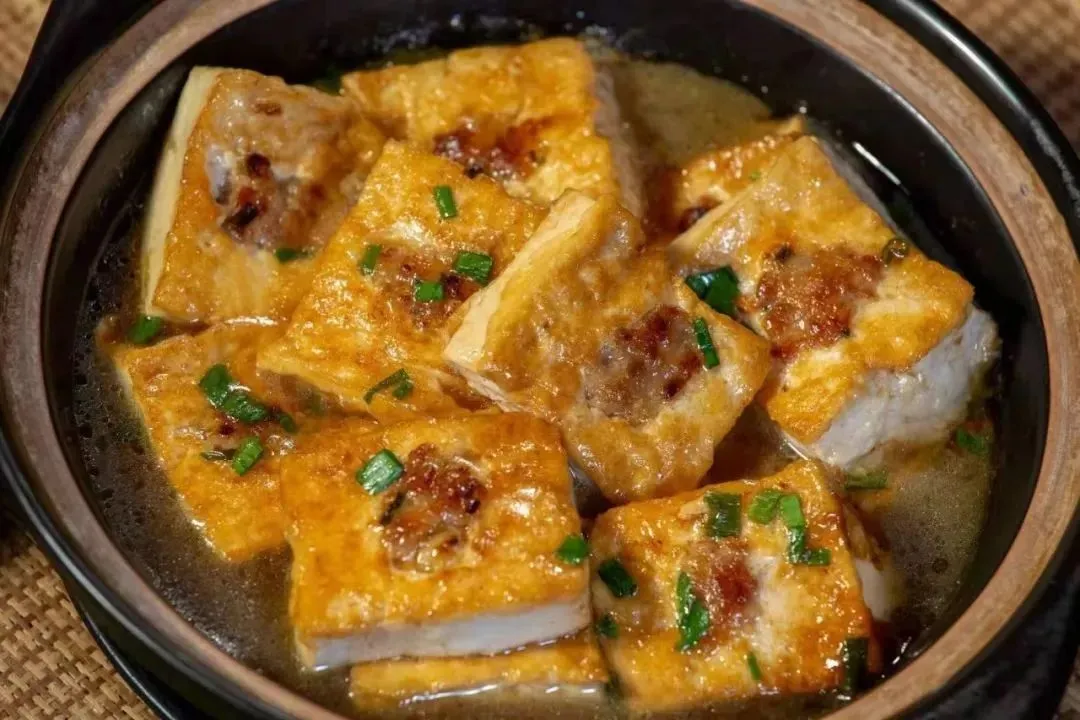 客家酿豆腐,是翁源客家人的名菜。在客家人的生活中,但凡有宴席必有此道菜。翁源的客家酿豆腐,因使用的水和豆制品不一样,酿出来的豆腐韧而爽口,清甜中带有嚼劲。翁源的酿豆腐馅多种多样,有韭菜、香菇肉馅及其他。