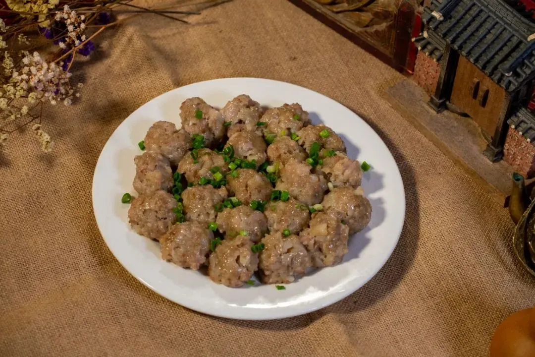 选用新鲜猪肉前甲,将肉切成丁状,然后放入本地番薯粉、食盐、葱头(或香菇)抓拌均匀搓成圆形,水开上锅蒸十分钟即可。