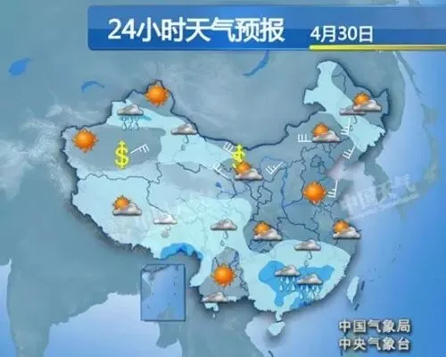 中央气象台预计,4月30日至5月3日,贵州东部、江淮西南部、江南、华南等地有中到大雨,部分地区暴雨,局地大暴雨。