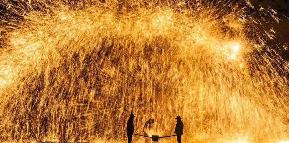 第一天直接去暖泉古镇,因为打树花这个东西,全中国只有蔚县能看到真的。很多人以为打树花就是把铁水泼到墙上溅出火花,看着热闹就行,但你真站在现场,距离那团 1600 度的铁水不到十米,看着师傅把一勺铁水用力甩向城墙,瞬间炸开的火树银花落下来,那种震撼不是视觉刺激,是你会突然明白,这个技艺能传下来不是因为好看,是因为它曾经是穷人过年唯一能制造出来的烟火,是生活逼出来的浪漫。