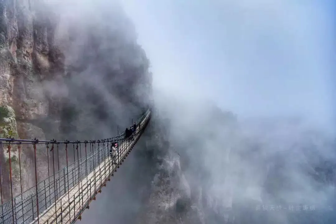 雁荡山方洞铁索桥位于方洞景区,桥建在两山的悬崖绝壁上,长百余米,下是万丈深渊,天气晴好时,伸手可摘云朵,走在摇摆的桥上需要一定的勇气。打卡很拉风哦!