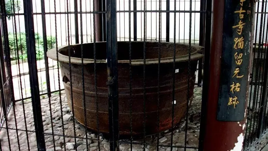 雁荡山能仁寺“亚洲第一”的大铁镬,铸造于北宋元祐七年(1092),一千多岁啦!镬高1.38米,上口直径2.4米,镬沿可立人,铭文记载重三万七千斤。9个世纪前浙南的铸造工艺竟达到这样高的水准,着实够我们“秀”一把。