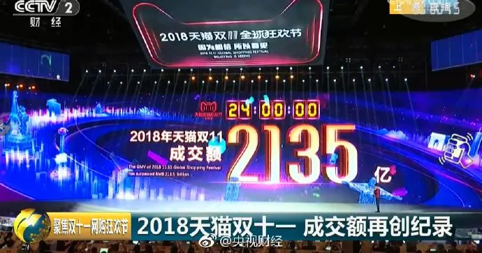 天猫:2018年天猫“双十一”一天成交额达2135亿元。