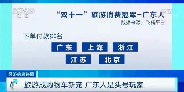 从十月底开始,多家在线旅游平台已经开始上线各种“双十一”促销产品,从景区门票到机票、酒店,从周边游、国内长线游到出境游,都有不同程度的优惠。 飞猪平台“双十一”预售10天的数据显示,浏览数据广东人排名第一,其次是浙江、江苏、上海、山东。下单付款的时候,广东人依旧领跑,上海、浙江、江苏、北京等地紧随其后。可以说,广东人实力问鼎旅游消费冠军,堪称头号玩家。 另外,多家平台表示,“双十一”期间,由于大量出境游特价产品出现,出境游的订单增长相对明显。