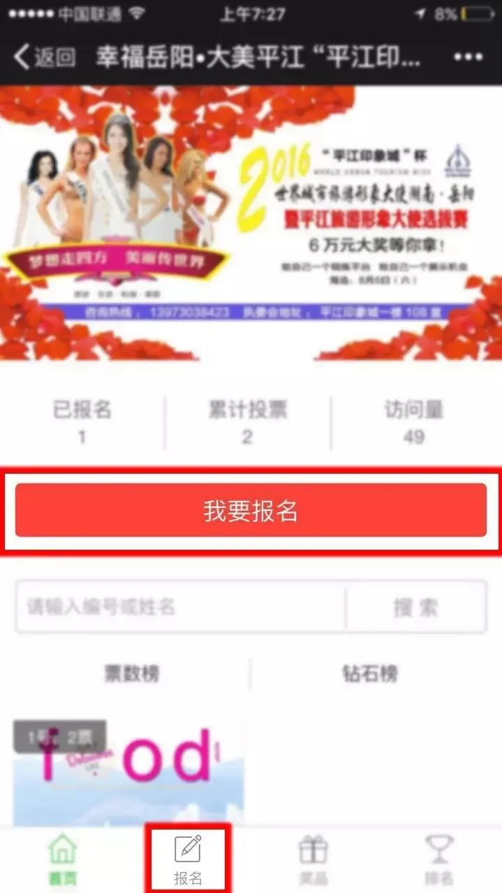 2016岳阳(平江)准旅游形象大使资料更新流程报名流程第一步 报名流程第二步