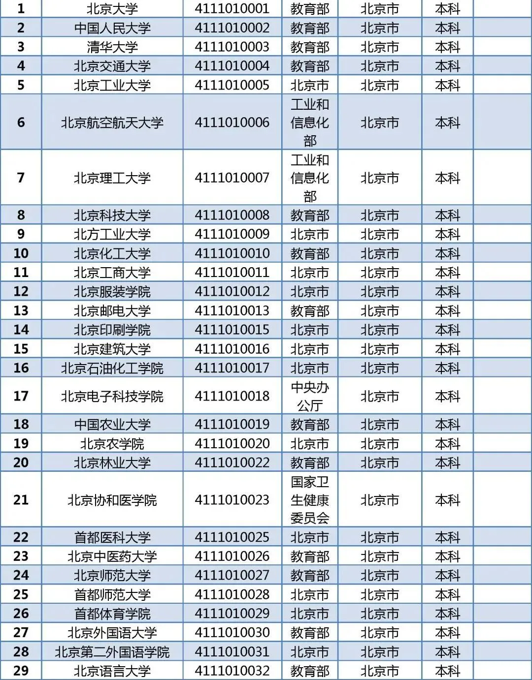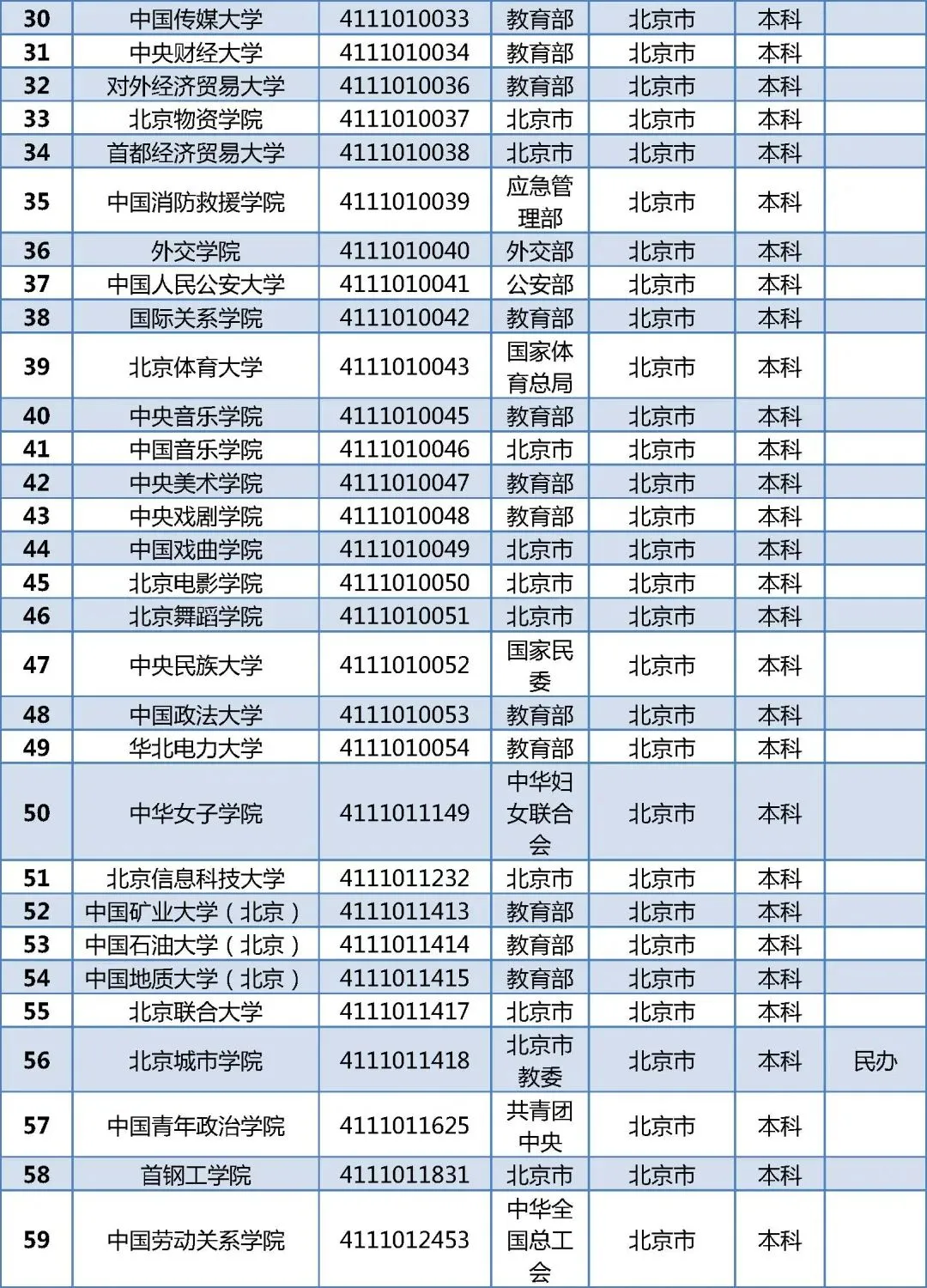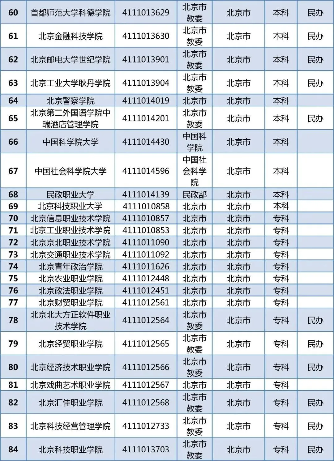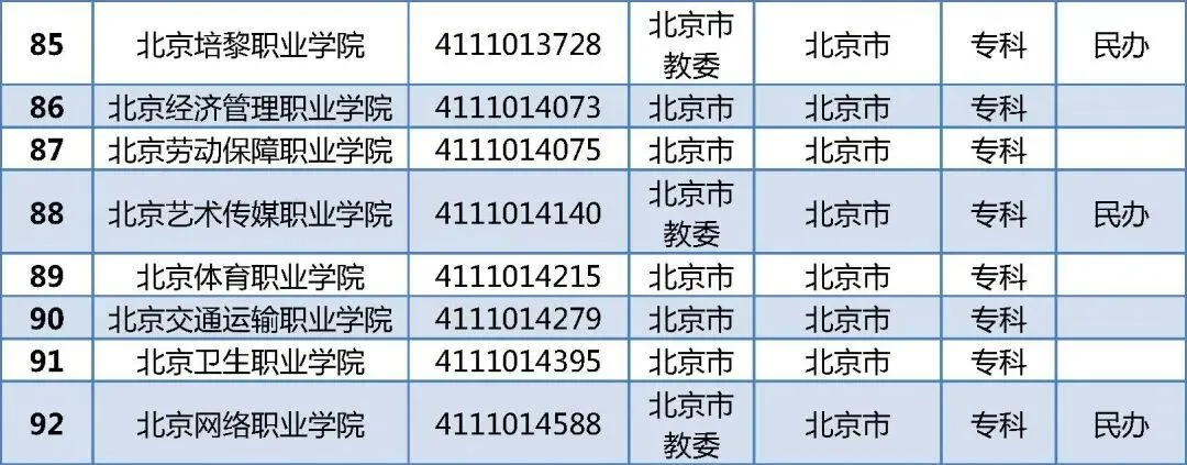 北京92所普通高校名单