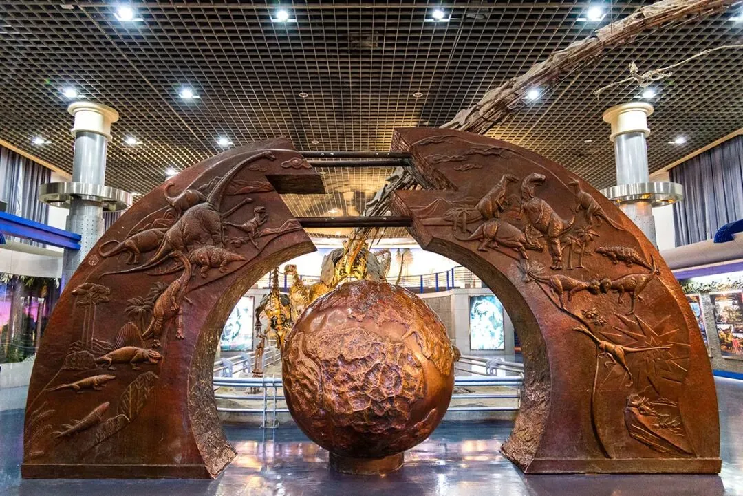 古爬行动物厅向观众展示了生物界两亿多年前的景观,并以总鳍鱼、鱼石螈、蚓螈和异齿龙为代表,演示了脊椎动物从水域向陆地发展的复杂过程。大厅中央展示了栩栩如生的恐龙骨架群,如中国人发现的第一条恐龙——许氏禄丰龙,体长达26米的井研马门溪龙,背上布满剑板的沱江龙,威风凛凛的永川龙,展翅翱翔的翼龙,称霸海洋的鱼龙。多媒体电脑可以让观众欣赏到恐龙的原始埋藏状态,并通过“化石搜寻器”来体味古生物学家挖掘恐龙化石的艰辛和乐趣,从模拟地层演示中体会到地球沧海变良田式的重大地质变化过程......