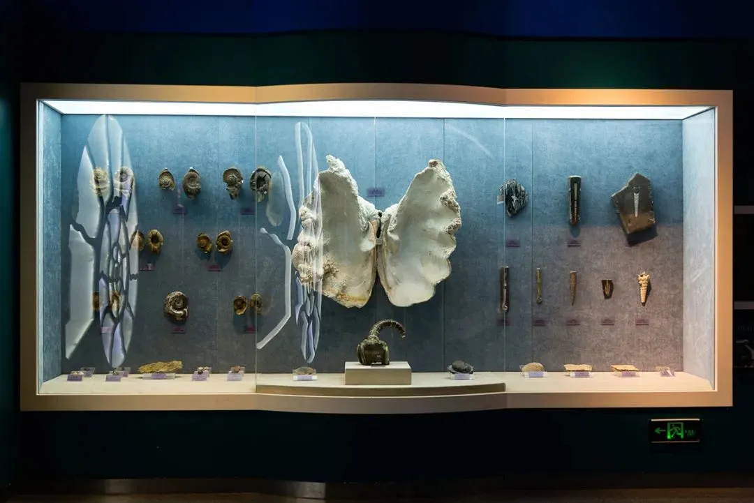 古无脊椎动物厅有面积八百平方米。包括原生动物、海绵动物、腔肠动物、腕足动物、软体动物、节肢动物、棘皮动物等门类。硕大的鸮头贝矗立在展厅门口,象征着无脊椎动物的繁盛历史。