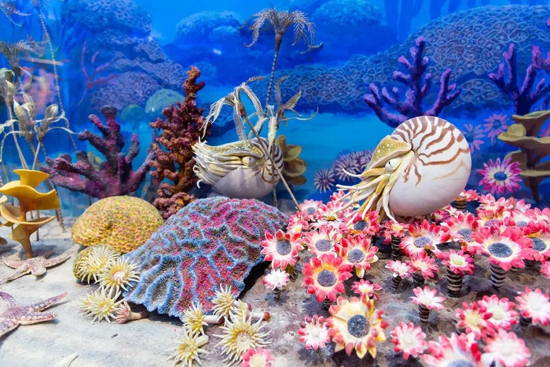 整改后的展览还增加了很多精美化石,并使用高科技的声光电技术再现亿万年前的远古世界;精美的地层褶皱展现地壳运动的威力,多媒体动画展示《化石的形成》;米勒实验解释生命的起源;观众通过参与展品互动,可以见到地球上最早的氧气是怎样从叠层石中冒出来的;海洋中水母优美的舞姿再现了5.8亿年前埃迪卡拉动物群的繁荣景象;放大镜灯箱展示的澄江动物群化石使观众赏心悦目;精美的珊瑚化石和色彩斑斓的复原景箱让我们看到了远古时期无脊椎动物的繁荣;观众可以亲自触摸鸮头贝化石,感受远古生命的气息;精心设计的菊石展箱展出美轮美奂的菊石化石,更有玛瑙化菊石使化石变成了宝石供人们欣赏;在增强现实展项中,观众将图片对准摄像头,就会有相应的生物在空中游荡;大型复原景观“繁荣的奥陶纪海洋”展示3米长的直角石复原形象,使观众直观地感受到远古生物的神奇,还有多媒体投影直角石生活的情景,观众宛如置身4.6亿年前的海洋当中,在美的享受中学到了相关的古生物学知识。欢迎参观北京自然博物馆“无脊椎动物的繁荣”展览。