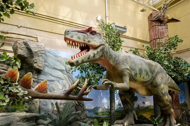 改造后的《恐龙公园》焕然一新,23条活灵活现的恐龙、两只翼龙以及一只和最早恐龙生活在一起的坚喙蜥构成了不同的组合,分别代表了从三叠纪晚期到白垩纪晚期不同时期的恐龙世界的面貌。