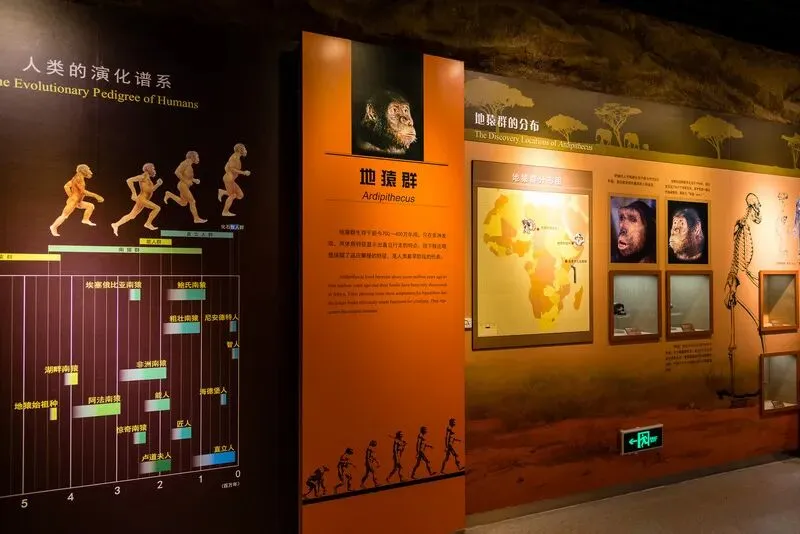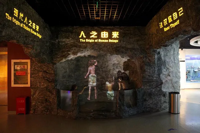 《人之由来》展览用图版、标本、多媒体、景观、投影及幻影成像等多种手段对所要探讨的内容进行了展示,每一种展示手段都蕴含着丰富的信息,都是对科学发现及科研成果的忠实体现。